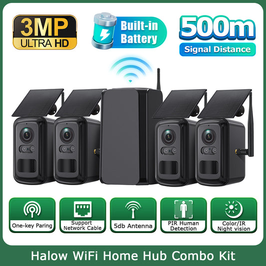 SHIIWOJOA WRK04 Halow WiFi 500M Long Transmission Distance 4ch Solar Wifi Kits Range Extender IP66 Wifi Plug and Play Wireless Solar Camera Kit