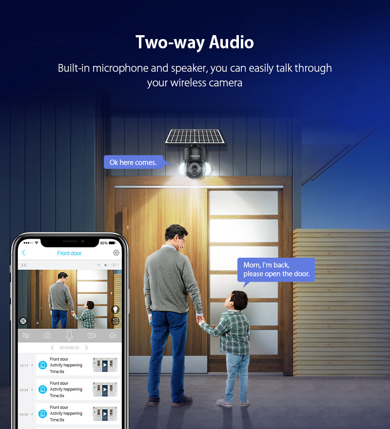 You can observe the real-time situation at home from outside, and an alarm will be triggered if a stranger appears!