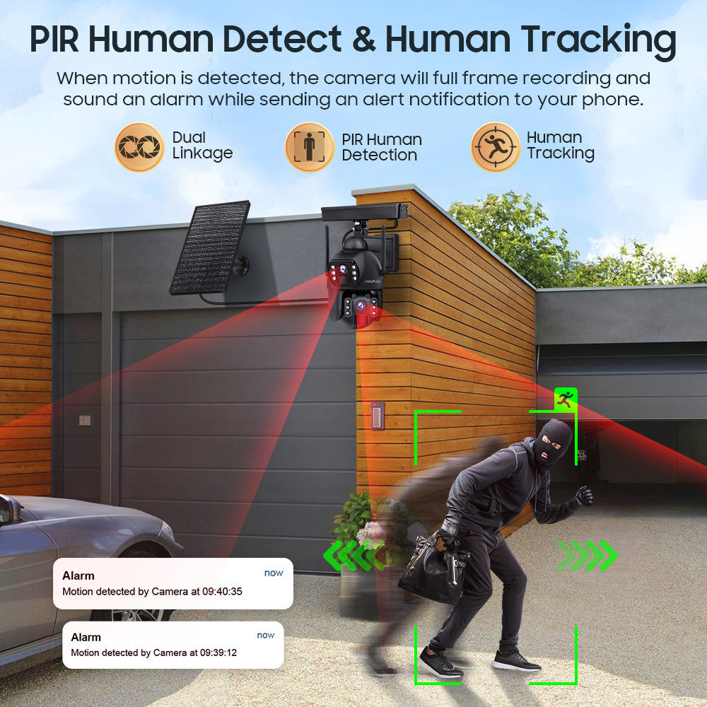 536AOV 24/7 Recording 4G Solar Camera 6MP Wireless WiFi Camera Auto Monitoring 10W Solar panel 20100mAh battery IP66