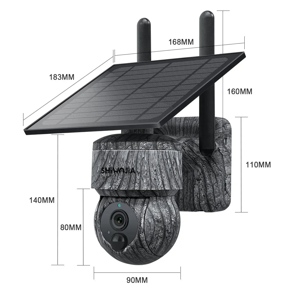 كاميرا SHIWOJIA الشمسية الخلوية، كاميرا صيد 4G SIM / WIFI، 360 درجة PTZ، فيديو مباشر 3 مساءً، الأشعة تحت الحمراء تحت الحمراء، كاميرات الألعاب مع حركة مقاومة للماء بما في ذلك البطارية المدمجة