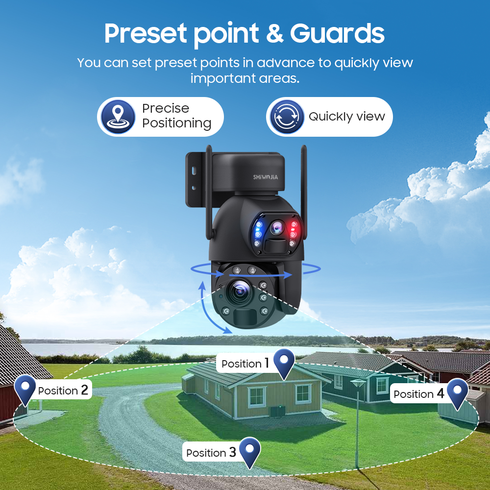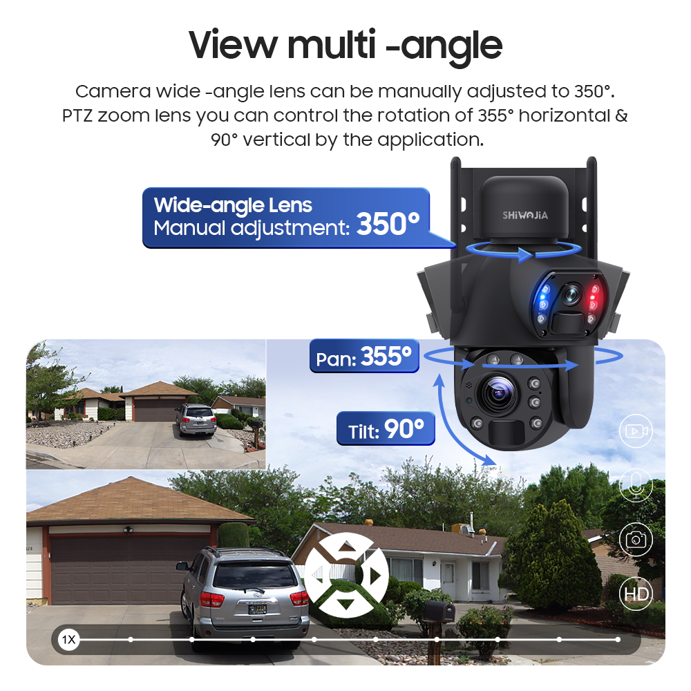 SHIWOJIA 30W Solar Battery 20x zoom Red Blue Alarm Floodlight PTZ Camera 3 PCS Solar Board Built in 28000mAh Batteries Night Vision Camera