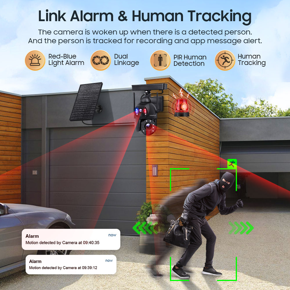 SHIWOJIA 36X بصري إضافة تكبير رقمي 4G SIM / WIFI كاميرا أمان خلوية مزدوجة العدسات، كاميرا شمسية 6 ميجابكسل لاسلكية في الهواء الطلق، إنذار صفارات الإنذار، رؤية ليلية ملونة، شاشة مزدوجة، بما في ذلك البطارية المدمجة