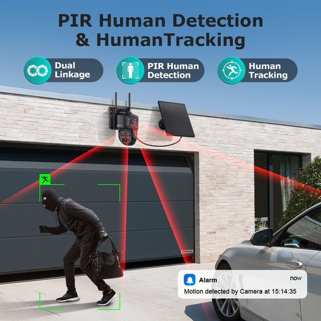 Built-in solar charging and efficient power management keep your camera active around the clock — no more dead batteries, no more blind spots.